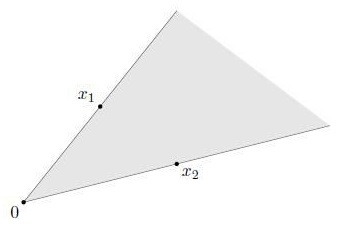 在几何上,具有此类形式的点构成了二维的扇形,这个扇形以0为顶点,边通过x1和x2