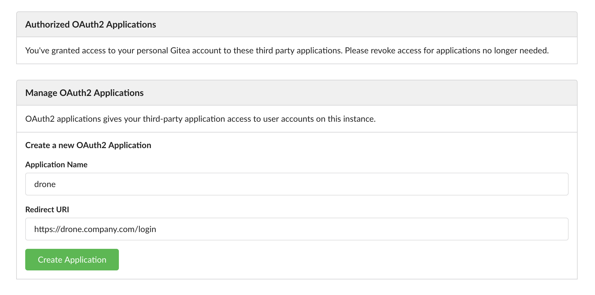 运行成功后,访问Drone的域名会自动跳转到Gitea进行验证,需要注意的是检测链接里面的回调链接的scheme(https还是http)需要和Gitea里面OAuth设置的一致,否则会验证失败。