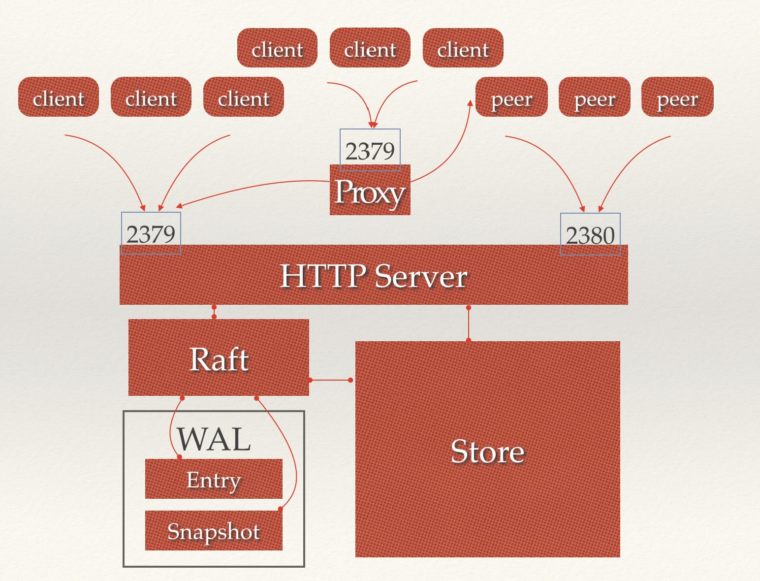 - HTTP Server:用于处理用户发送的API请求以及其它etcd节点的同步与心跳信息请求